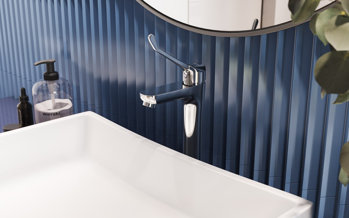 Komfort mycia zarówno w sferze prysznica, jak i umywalki gwarantują specjalne baterie z serii Algeo Medico. Posiadają one uchwyt pozwalający na szybkie regulowanie strumienia wody za pomocą łokcia. Dzięki temu unika się mniej higienicznego dotykania urządzenia dłonią. Serię wyróżnia atrakcyjna linia wzornicza, dlatego doskonale wpisuje się ona w nowoczesne łazienkowe wnętrze.