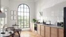 W minimalistycznej kompozycji o ścianach pokrytych białą cegłą zlew z baterią umieszczono w ciągu zabudowy o drewnianych frontach. Ciemna strefa zmywania została skontrastowana z jasnymi powierzchniami. Przykuwa uwagę stojącą baterią Adore Black/Chrome o długiej, płaskiej wylewce z funkcją obrotową i perlatorem. Ten ostatni napowietrza strumień wody, sprawiając, że zużywamy jej mniej. Czarna tonacja jest w aranżacji delikatnie dawkowana. Oprócz barw konkurują ze sobą połysk i mat: błyszczące białe fronty górnej zabudowy meblowej i chropowatość cegły na ścianie, połyskujący marmurowy, jasny blat i matowy, czarny zlew z baterią. To kolejny przykład kuchni ze smakiem.