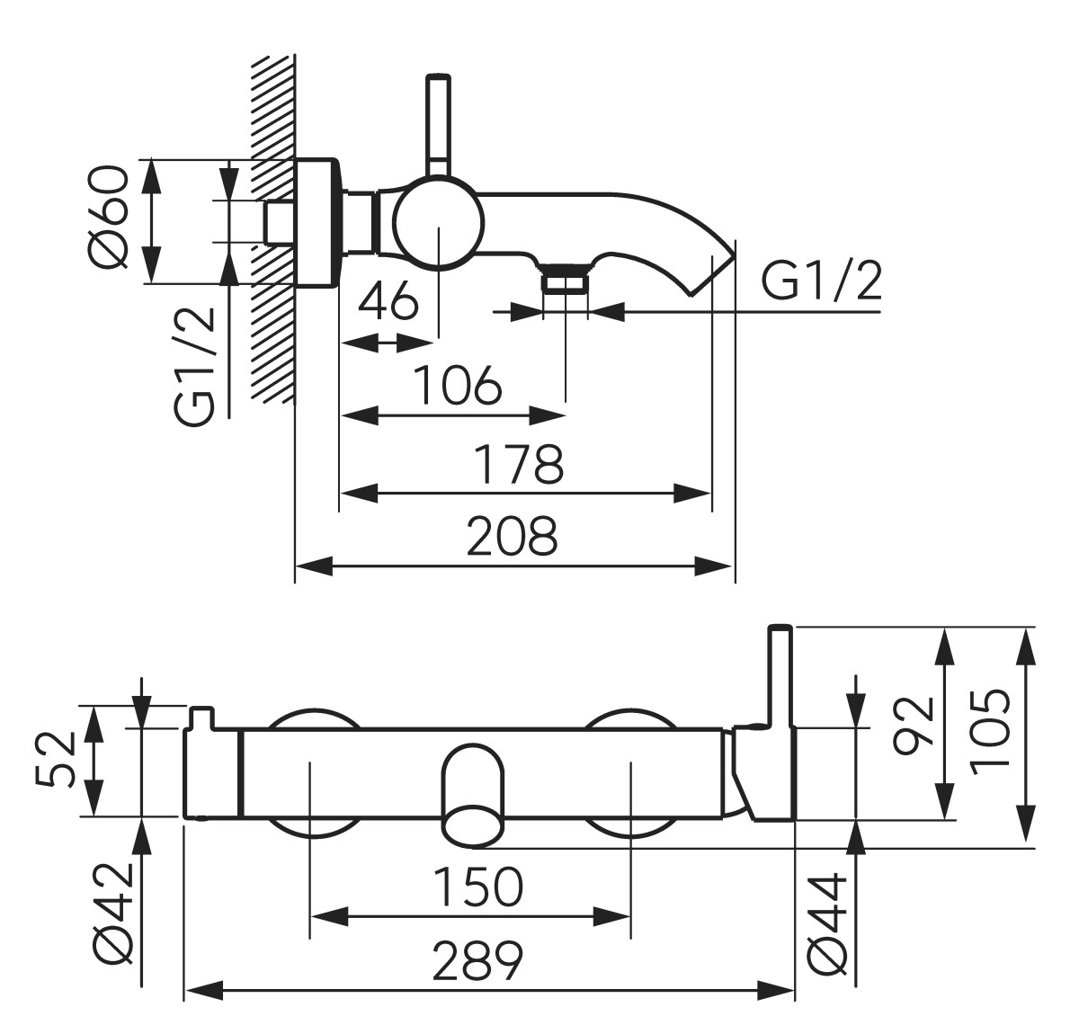 CIRICULUS Naścienna bateria wannowa z zestawem natryskowym