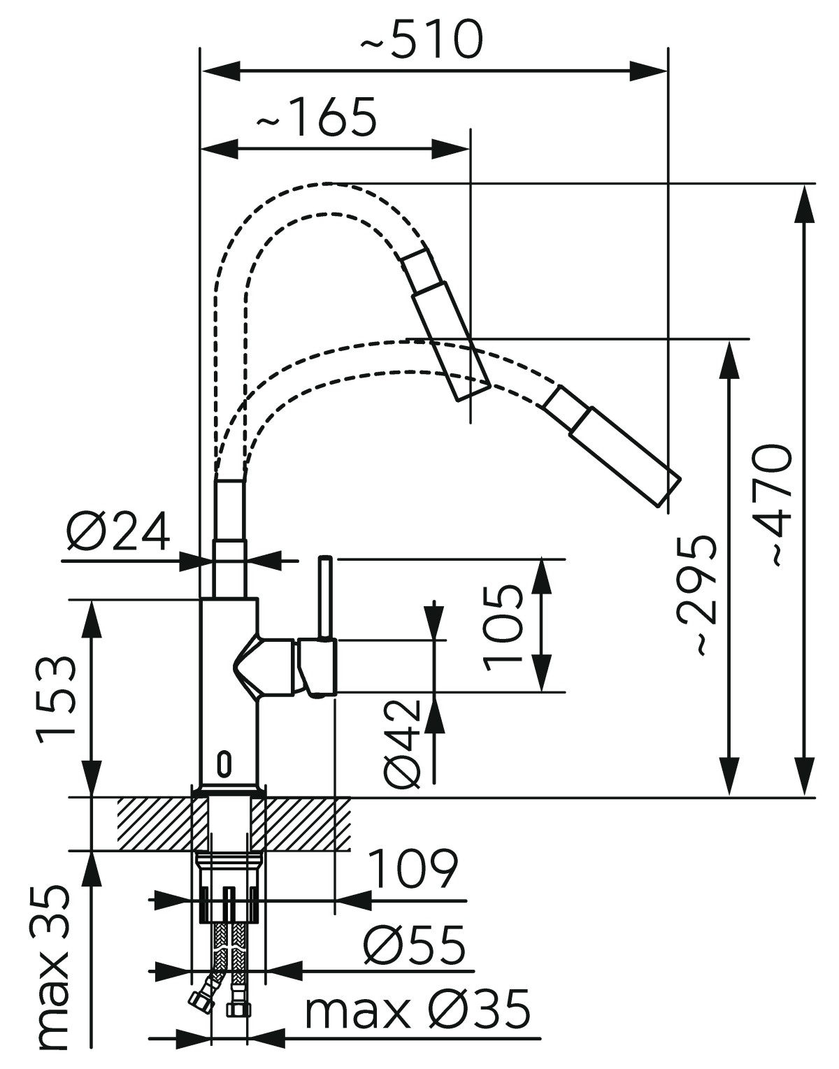 Zasięg wylewki [mm]: