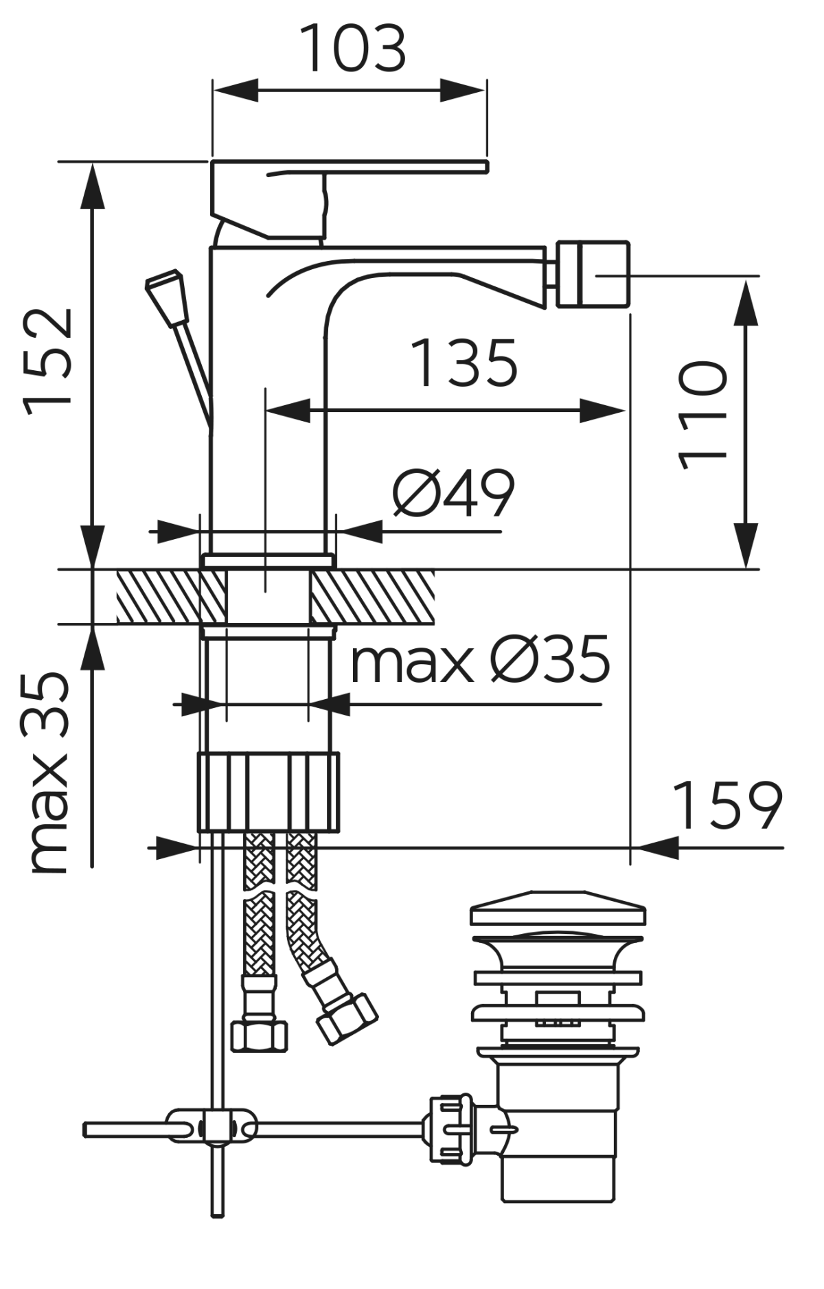 Wysokość wypływu wody [mm]:
