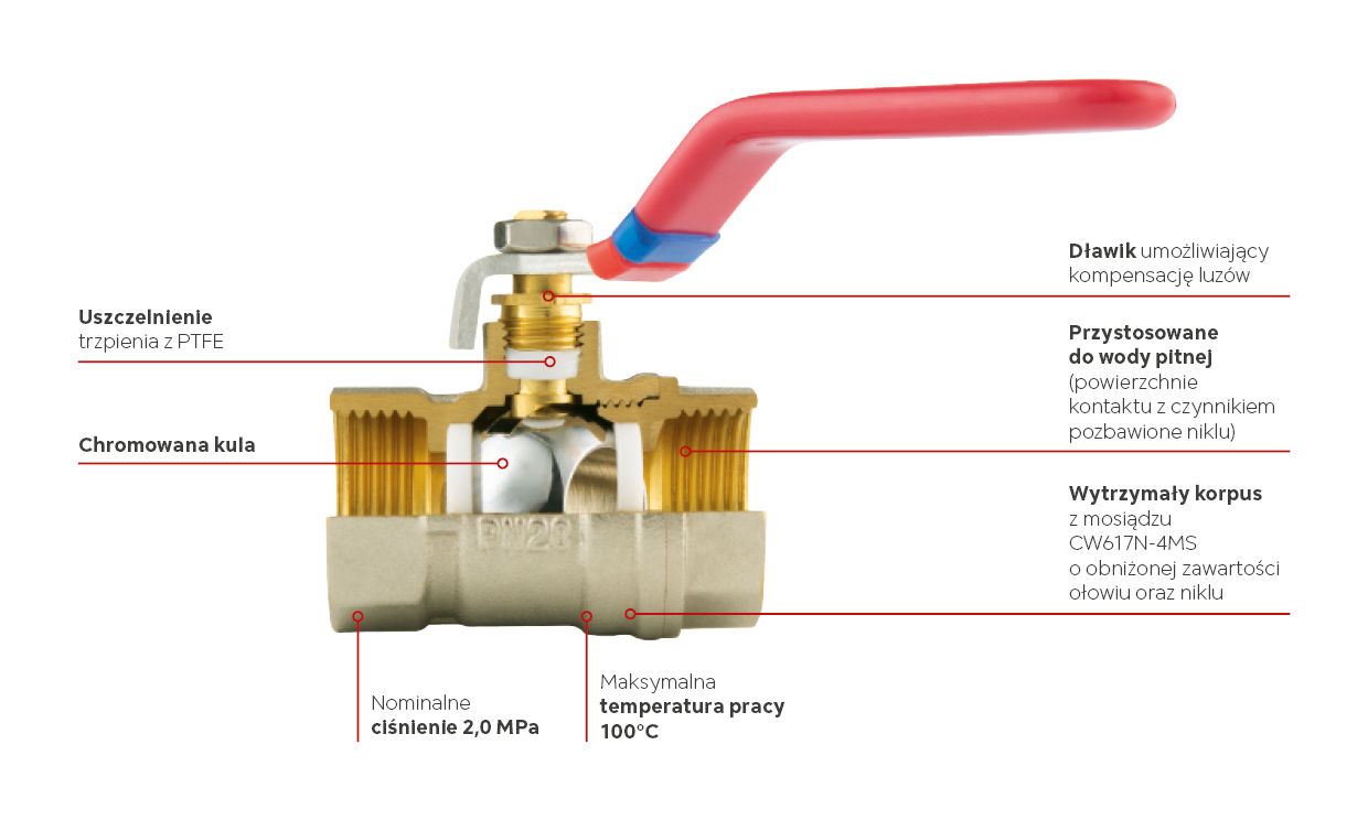 kurki przystosowane do wody pitnej – powierzchnia, która ma kontakt z wodą pitną (wnętrze zaworu oraz gwinty przyłączeniowe) nie jest niklowana.